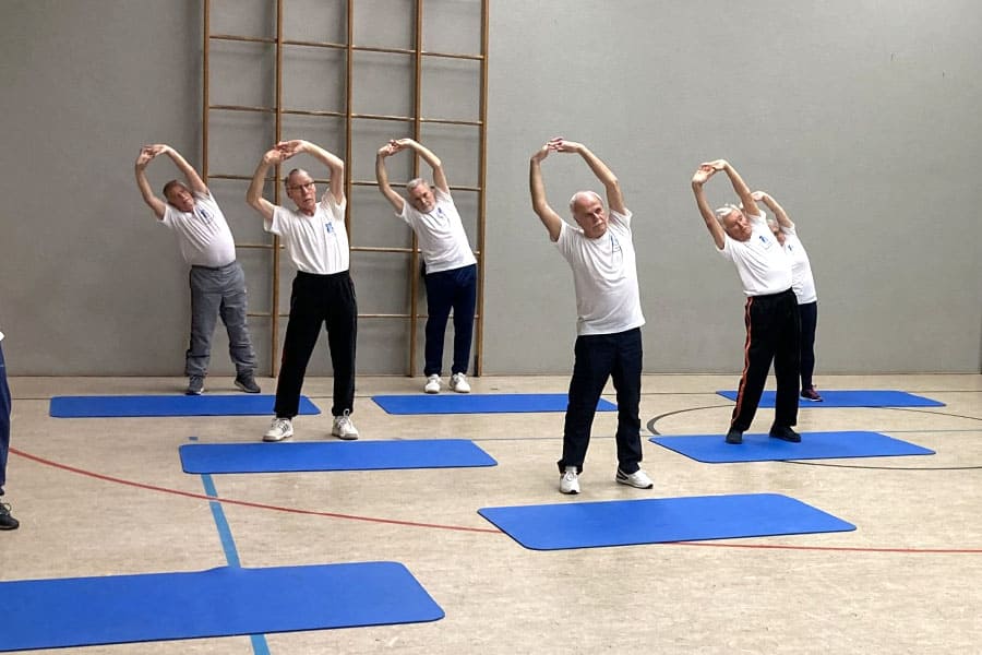 Многие пожилые люди утратили способность дотягиваться руками до пальцев ног. Но с помощью гибких эспандеров вы можете адаптировать классические упражнения на растяжку к своему уровню физической подготовки всего за несколько шагов. Вместо того, чтобы пытаться дотянуться руками до пальцев ног стоя, встаньте посередине эспандера и крепко возьмитесь за концы.